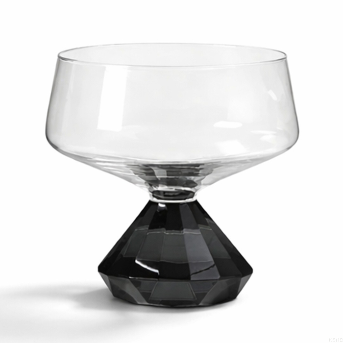 كوب زجاجي أنيق بتصميم فريد يجمع بين الشفافية والنقاء في الجزء العلوي، وقاعدة هندسية سوداء تضيف طابعًا عصريًا جريئًا. مثالي لتقديم الكوكتيلات أو الحلويات بأسلوب راقٍ، كما يضفي لمسة فنية مميزة على تنسيق الطاولة
