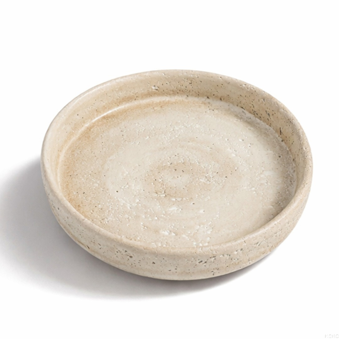 صحن صغير مصنوع من السيراميك بلون نيود هادئ ولمسة مطفأة مليئة بالتفاصيل المرشوشة الطبيعية. تصميمه البسيط والحجري يجعله مثاليًا لتنسيق الزوايا أو التقديم الأنيق، ويضفي لمسة فنية على المساحة سواء تم استخدامه كقطعة ديكور أو وعاء عملي.